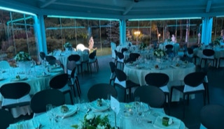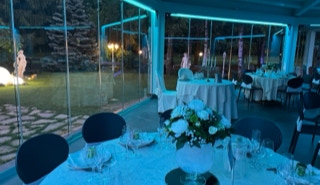 Il ristorante dispone di un salone immersa nel verde caratterizzata da ampie vetrate in cui si può godere della bellissima vista di tutto ciò che circonda il ristorante, in cui potrete decidere di allestire il vostro banchetto di nozze.